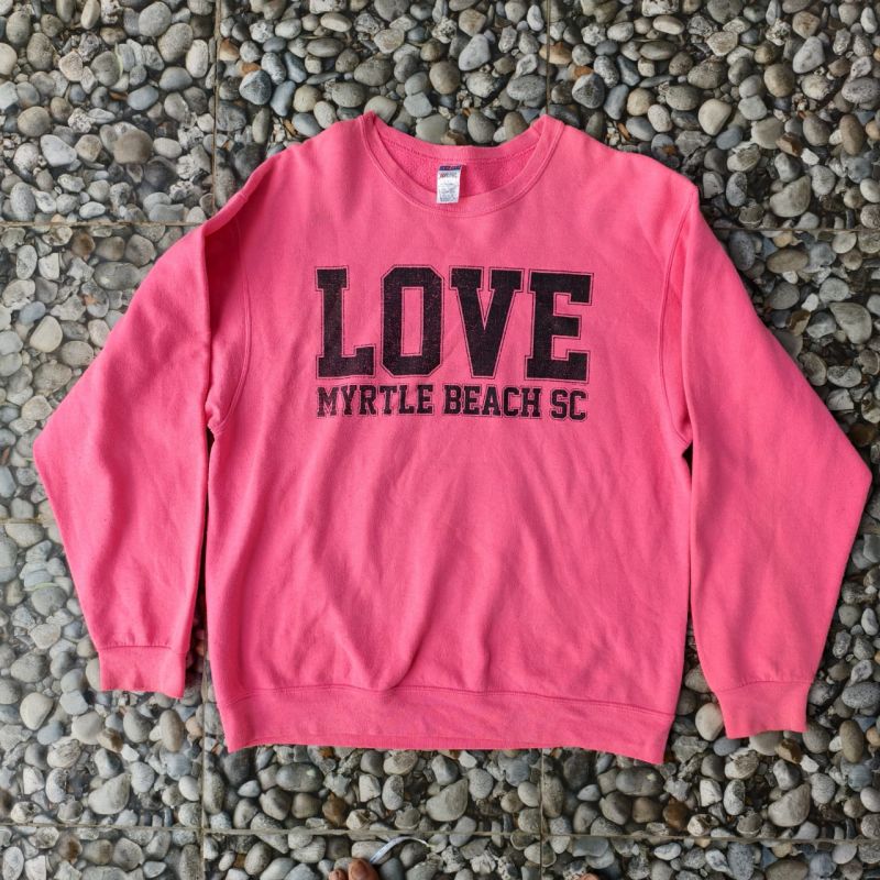 Crewneck Jerzees Pink LOVE Myrtle Beach SC Size L XL