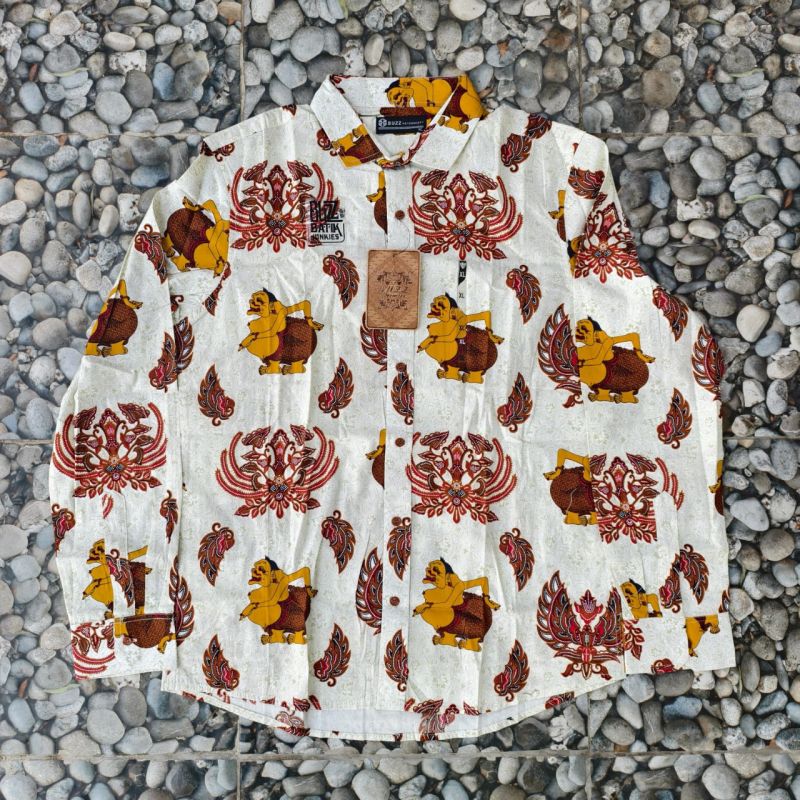 Buzz Batik Junkies Kemeja Batik Wayang Lengan Panjang Cream Motif Eksklusif Size XL
