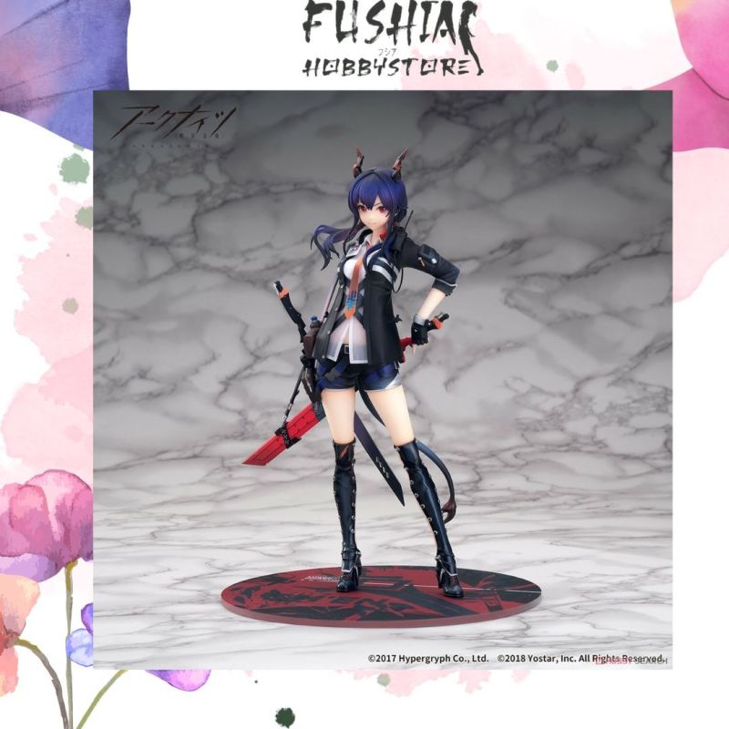 Several PVC figures of the Arknights character Chen are available from different manufacturers and in various versions. Some of the most notable include a 1/7 scale figure by APEX and a Nendoroid by Good Smile Arts Shanghai.