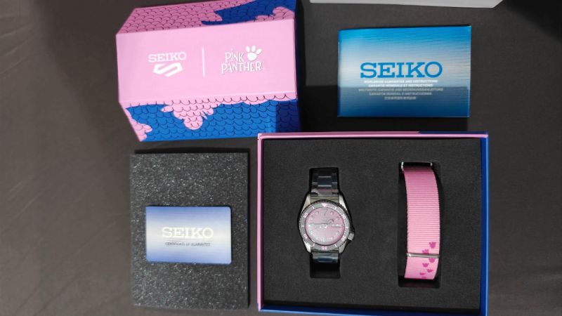 Seiko 5 Sport x Pink Panther SRPM07K Pink Dial Stainless Steel Limited Edition Watch