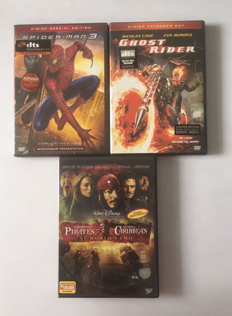 Gap 565 lot DVD 2 disc Ghost Rider Spiderman 3 dan Pirates of the Caribbean at world end